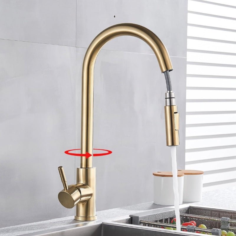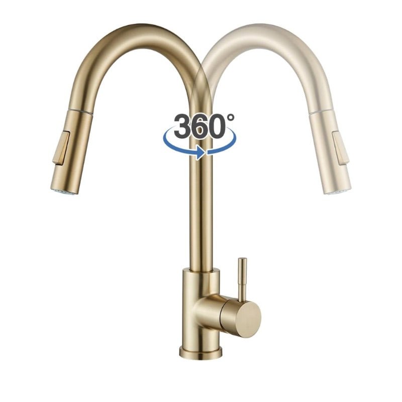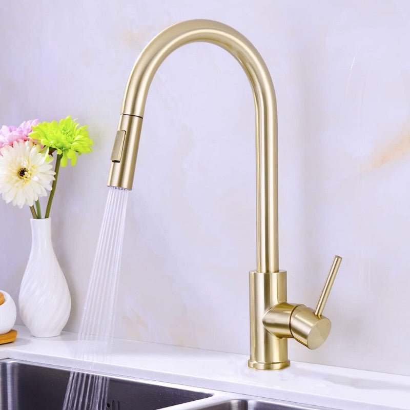 Mitigeur cuisine doré avec douchette – KRAKEN