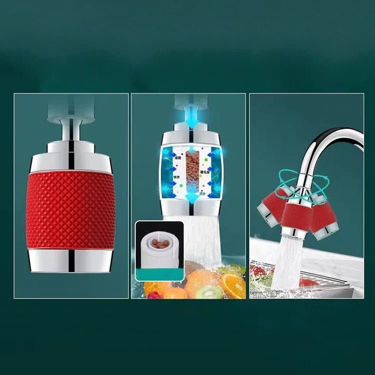 Matériau : ABS + Laiton Couleur : Rouge Dimensions : 10 x 4 cm Pièce : Cuisine / Salle de bain Type : Tête de robinet moussante et purifiante Type de raccord entrée/sortie : Universel 22 mm Eau chaude / eau froide : Dépend du robinet Contrôle de la température : Non
