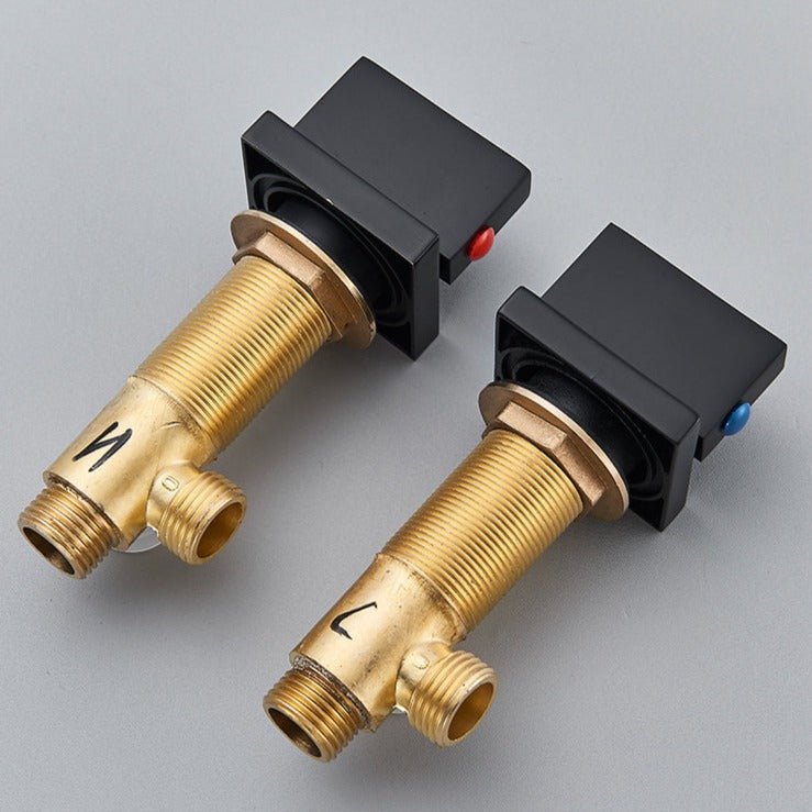 Matériau : Laiton (corps du robinet), céramique (valve) Dimensions : 24,5 x 15,5 cm (robinet), 8 x 6 cm (poignées) Pièce : Salle de bain Couleur : Noir mat Type de raccord entrée/sortie : Filetage mâle 1/2 Flexible d’alimentation : Oui (inclut deux flexibles) Eau chaude/eau froide : Oui Contrôle de la température : Manuel