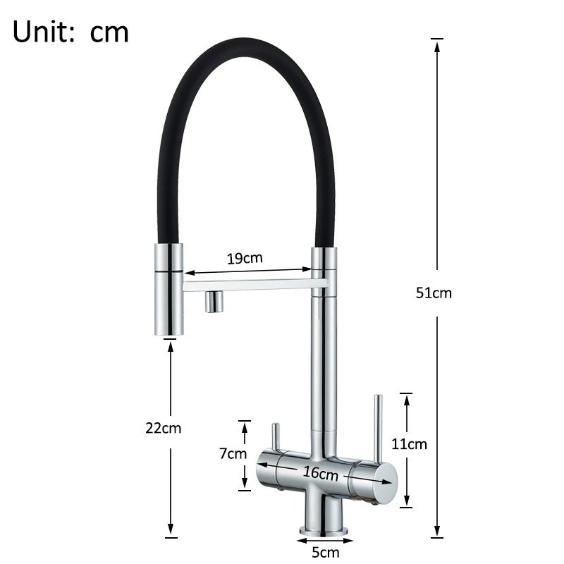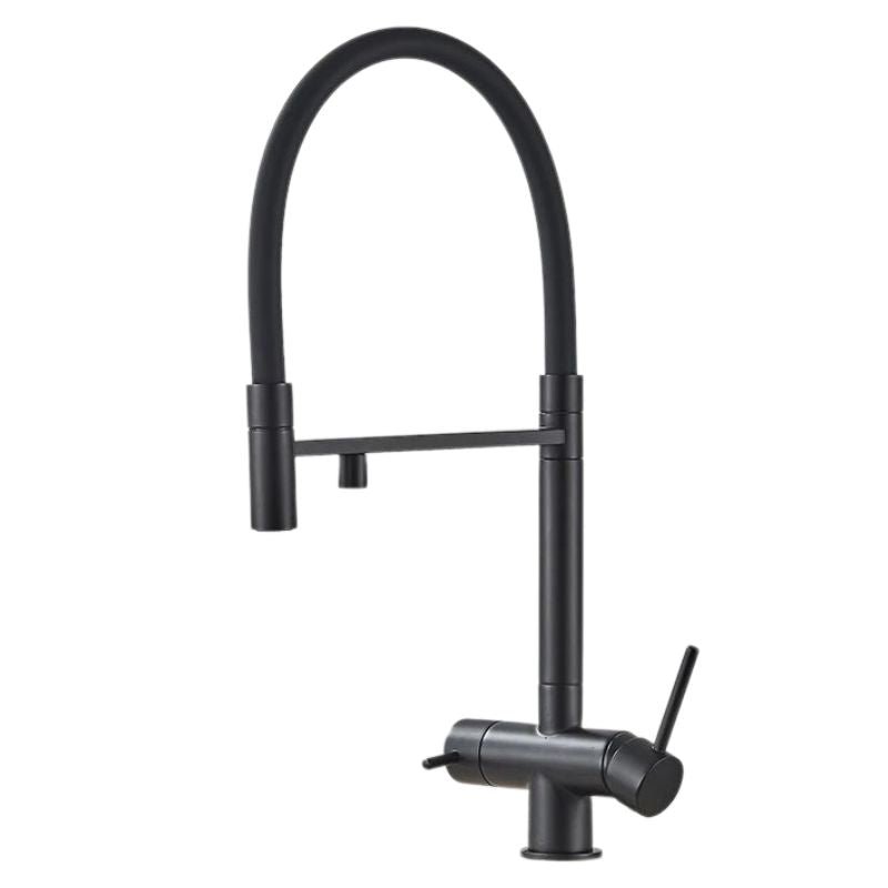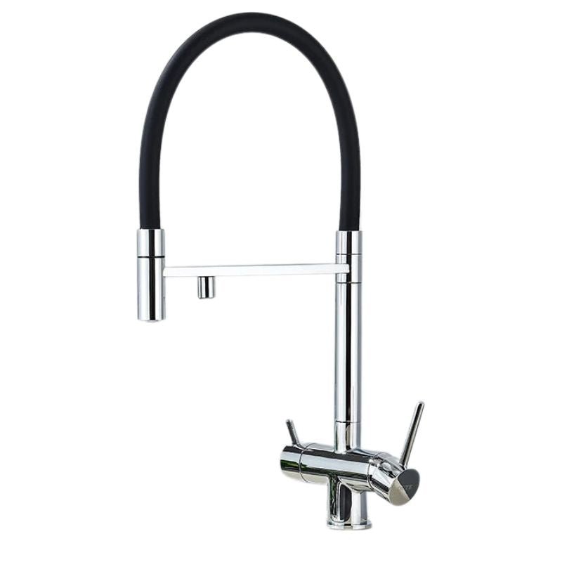 Alliant élégance et fonctionnalité, ce robinet 3 voies avec prolongateur est conçu pour distribuer eau chaude, eau froide et eau filtrée à partir d’une seule sortie. Sa finition dorée mate et son tuyau flexible noir apportent une touche contemporaine à toute cuisine moderne. Le prolongateur orientable permet un nettoyage facile et une meilleure portée sur l’évier. Parfait pour les amateurs de design épuré, il allie esthétique, praticité et technologie pour une expérience d’utilisation quotidienne fluide et hygiénique.
