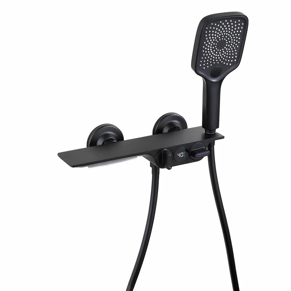 Matériau : Laiton Valve en céramique Couleur : Noir mat Douchette carré Écoulement bain en cascade Dimensions : 333 x 115 mm Poids : 2,312 kg Pièce : Salle de bain Type : Robinet baignoire cascade avec douchette Type de raccord entrée/sortie : Femelle G 1/2 Flexible d’alimentation : Non Eau chaude/eau froide : Oui Contrôle de la température : Manuel avec affichage numérique