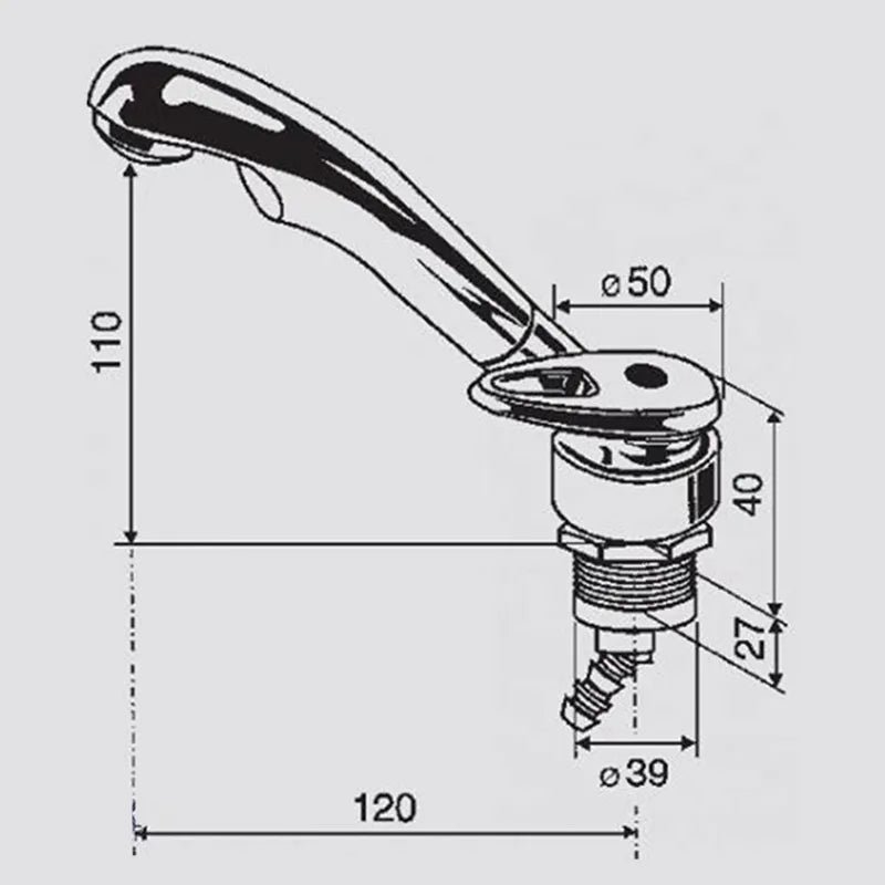 Système de contrôle : Connexion à une pompe à eau Montage sur plan : Trou de 32 mm Diamètre de l’entrée du tuyau : 10 mm Longueur de la poignée : 195 mm Tension : 12V