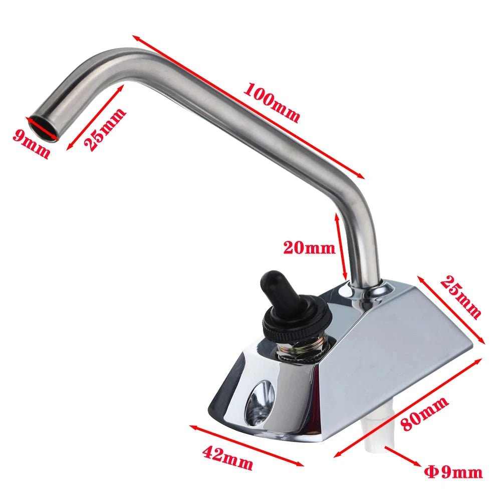 Ce robinet pour camping-car avec contacteur intégré est spécialement conçu pour les installations à pompe 12V. Son interrupteur à bascule active directement la pompe à eau dès l’ouverture, offrant une gestion efficace et autonome du débit. Le bec col de cygne inoxydable permet un accès facile à l’évier tout en garantissant une bonne hauteur de passage. Son design anguleux et compact s’intègre parfaitement dans les petits espaces comme les cuisines de van ou de bateau. Facile à installer et résistant à l’humidité, ce robinet est un indispensable pour les véhicules aménagés.