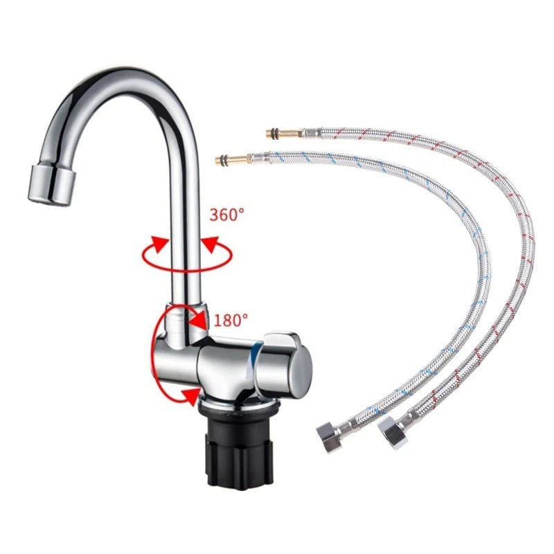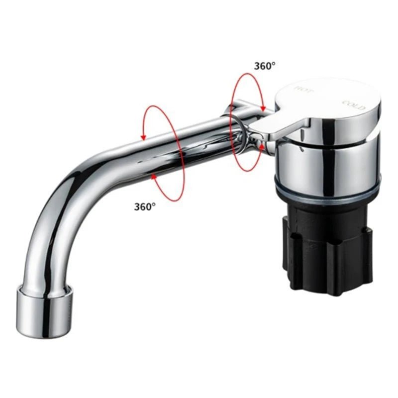 Fabriqué en métal chromé résistant, ce robinet allie compacité et esthétique. Son bec en U pivotant permet une grande liberté de mouvement, même dans les petits espaces. Son levier de commande offre un débit fluide et précis, et sa finition antirouille en fait un excellent choix pour les environnements humides et mobiles.
