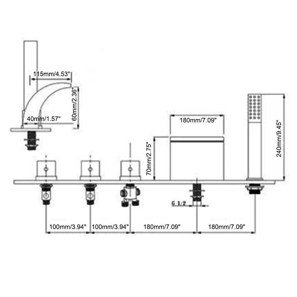 Matériau : Laiton Valve en céramique Couleur : Argenté chromé Pièce : Salle de bain Dimensions : 180x70x115 mm Poids : 2.5 kg 3 poignées Installation : 5 trous Type : Robinet encastrable Raccord entrée : Femelle G1/2 Flexible d’alimentation : Oui Contrôle de température : Poignées indépendantes pour eau chaude et froide