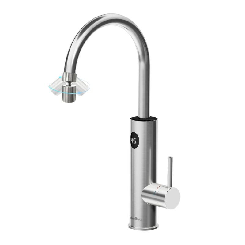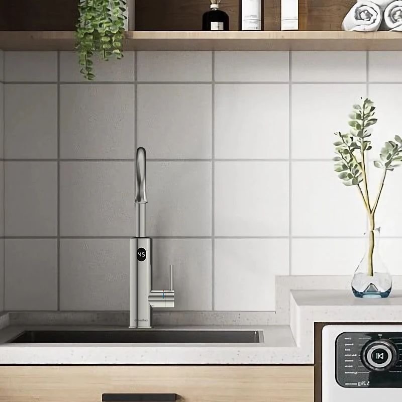 Avec son corps en inox élégant et sa courbe en col de cygne, ce robinet s’intègre avec style dans tout type de cuisine. Il se connecte directement à une prise électrique et à une arrivée d’eau froide, sans besoin de travaux lourds. Robuste, résistant aux éclaboussures et aux hautes températures, il allie efficacité énergétique, esthétique contemporaine et praticité.