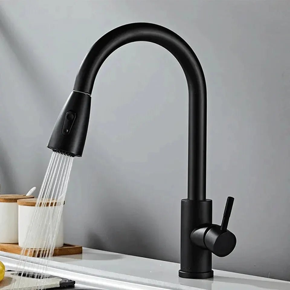 Ce robinet col de cygne en laiton offre une combinaison parfaite entre design moderne et fonctionnalité avancée. Fabriqué en laiton massif avec finition noire mate, il assure durabilité, résistance à la corrosion et style minimaliste. Son bec haut incurvé permet une utilisation confortable, même avec des ustensiles volumineux. La douchette extractible à double jet (classique et pluie) facilite le nettoyage et le rinçage au quotidien. Un mitigeur ergonomique et robuste, idéal pour les cuisines modernes en quête d’efficacité et de caractère.