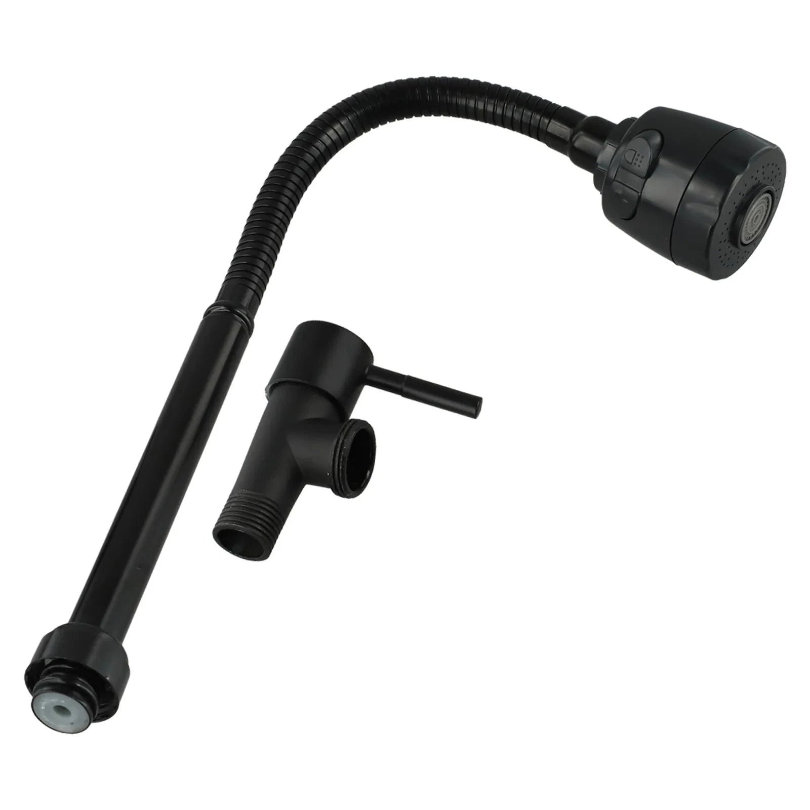 Ce robinet col de cygne noir au style industriel moderne est à la fois pratique et résistant. Doté d’un bec flexible orientable à 360°, il facilite le rinçage et le nettoyage de votre évier. Sa commande latérale offre un contrôle fluide du débit, tandis que la douchette intégrée permet de passer facilement d’un jet standard à un jet pluie. Conçu en ABS et acier avec finition noire mate, ce robinet est résistant à la corrosion et s’intègre parfaitement dans les cuisines contemporaines ou les espaces utilitaires. Installation rapide et usage intuitif.