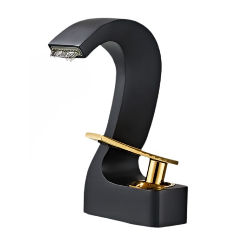 Matériau : Métal Couleur : Noir mat, Noir / Doré Dimensions : 170 x 90 mm Poids : 955g Pièce : Salle de bain (Lavabo) Écoulement de l’eau en cascade Type : Mitigeur cascade en forme de cygne Type de raccord entrée/sortie : Filetage 1/2 femelle Flexible d’alimentation : Oui (deux fournis) Eau chaude/eau froide : Oui Contrôle de la température : Manuel