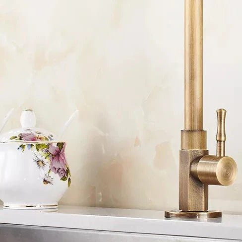 Ajoutez une touche de charme vintage à votre cuisine avec ce robinet en finition bronze brossé. Doté d’un bec pivotant à 360 degrés, il offre une grande flexibilité pour toutes vos tâches culinaires, que ce soit le nettoyage ou le remplissage de récipients. Son design épuré et intemporel s’intègre parfaitement dans les cuisines traditionnelles et modernes. Fabriqué avec des matériaux robustes et résistants à la corrosion, ce robinet allie esthétique et durabilité, assurant une longue durée de vie. Un choix idéal pour sublimer votre espace tout en restant pratique.