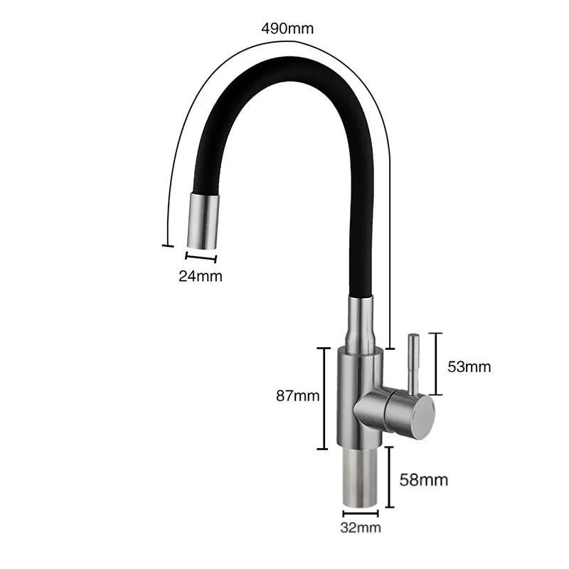 Ce robinet en acier inoxydable avec col en silicone noir allie robustesse et esthétique contemporaine. Conçu pour résister aux rigueurs de l’utilisation quotidienne, il s’intègre harmonieusement à tous les styles de cuisines.