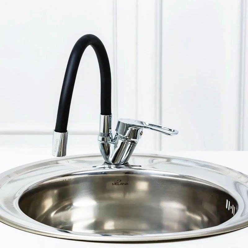 Ce robinet de cuisine inclinable est conçu pour offrir une flexibilité maximale dans un format compact. Doté d’un bec en silicone orientable à 360°, il permet d’ajuster facilement la direction du jet d’eau selon vos besoins. Son design moderne allie une finition chrome brillante à un col noir mat, créant un contraste élégant. La commande unique permet de régler débit et température d’une seule main. Robuste, simple à installer et facile à entretenir, ce robinet est parfait pour les petites cuisines, éviers ronds ou espaces fonctionnels.