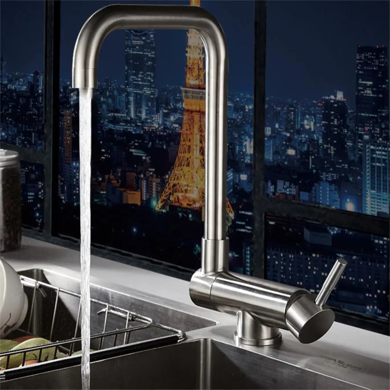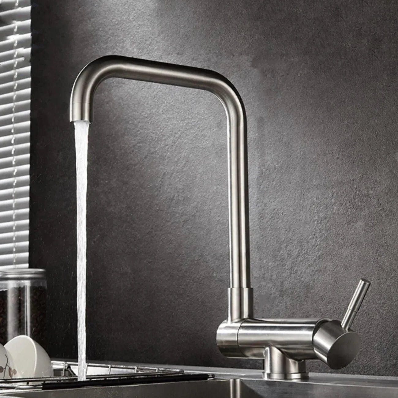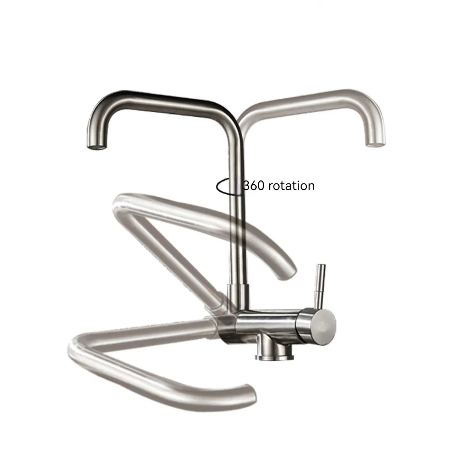 Ce robinet rabattable est conçu pour résoudre les contraintes d’espace en cuisine. Sa capacité à se plier en un geste simple permet d’ouvrir une fenêtre sans obstruction. En plus de sa praticité, son design épuré en acier inoxydable s’harmonise avec les cuisines modernes.