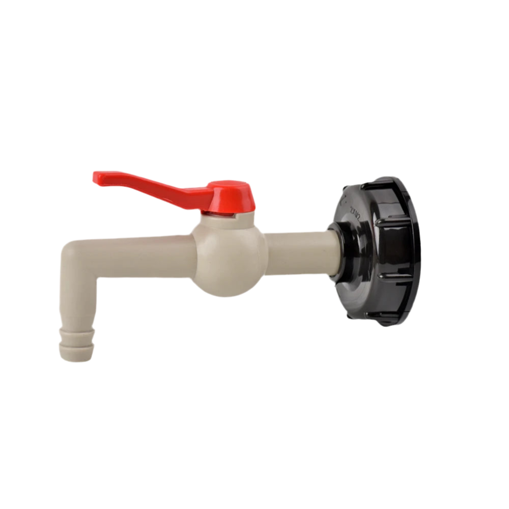 Ce robinet en plastique pour cuve 1000L est compatible avec les filetage standard S60x6 (60 mm). Léger, solide et économique, il est équipé d’une poignée à levier rouge pour un contrôle facile du débit. Sa sortie droite de 1″ (32 mm) permet un raccordement direct à un tuyau ou à un seau. Fabriqué en plastique durable, il résiste aux intempéries, à l’usure et aux produits non corrosifs. Parfait pour la récupération d’eau de pluie, l’irrigation, ou le transfert de liquides à faible pression.