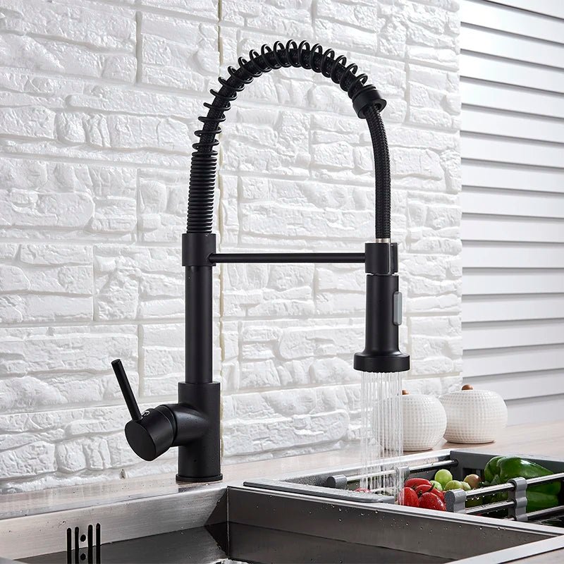 Apportez une touche de modernité et de praticité à votre cuisine avec ce robinet de cuisine à ressort noir. Conçu en acier inoxydable avec une finition noire mate, il garantit une résistance optimale aux traces, à la corrosion et aux rayures. Son douchette extractible et flexible, associée à un bec pivotant à 360°, offre une liberté de mouvement totale pour un rinçage efficace et un nettoyage facile des grandes casseroles. Son design professionnel s’intègre parfaitement aux cuisines modernes et industrielles.
