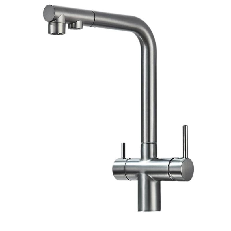 Ce mitigeur intègre deux sorties d’eau distinctes, parfaitement séparées : une pour l’eau chaude/froide traditionnelle, l’autre pour l’eau purifiée. Plus besoin de multiplier les robinets ou de percer un second trou dans votre évier. Cette solution 2 en 1 est idéale pour les foyers équipés d’un osmoseur ou système de filtration. Le tout, dans un design raffiné et ultra fonctionnel.