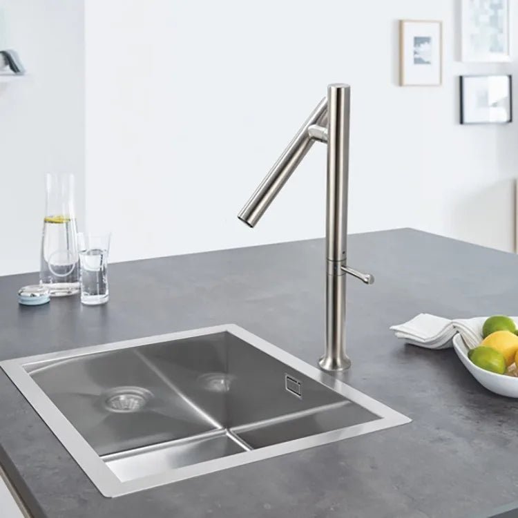 Ce robinet design pour lavabo se distingue par son look minimaliste et vertical, pensé pour les intérieurs modernes. Fabriqué en acier inoxydable brossé, il résiste parfaitement à la corrosion, aux taches et à l’usure quotidienne. Son bec orientable et extractible offre une liberté de mouvement idéale pour remplir de grands récipients ou nettoyer avec précision. Le levier latéral discret permet un contrôle fluide du débit et de la température. Un choix parfait pour sublimer un lavabo contemporain tout en profitant de fonctionnalités pratiques et durables.