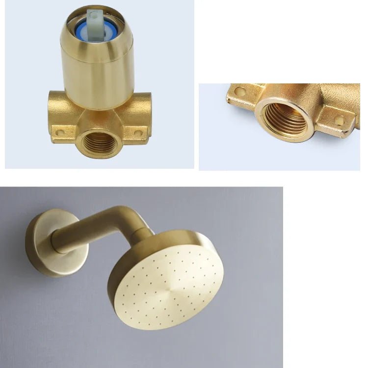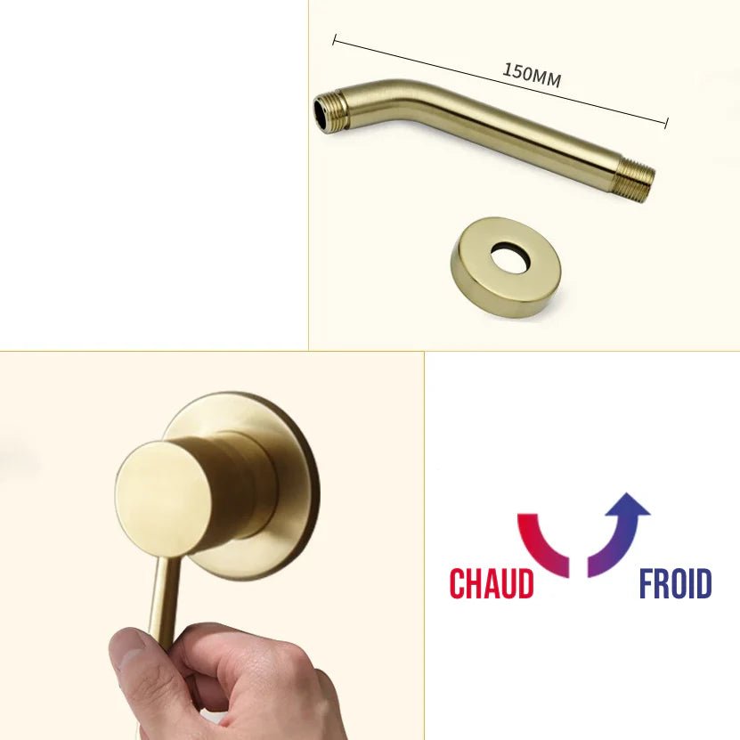 Matériau : Laiton Couleur : Doré brossé Dimension pommeau de douche : 100×150 mm Installation : Fixation murale encastrable Type de raccord entrée / sortie : Femelle G1/2 Flexible d’alimentation : Non Eau chaude / eau froide : Oui Contrôle de la température : Manuel