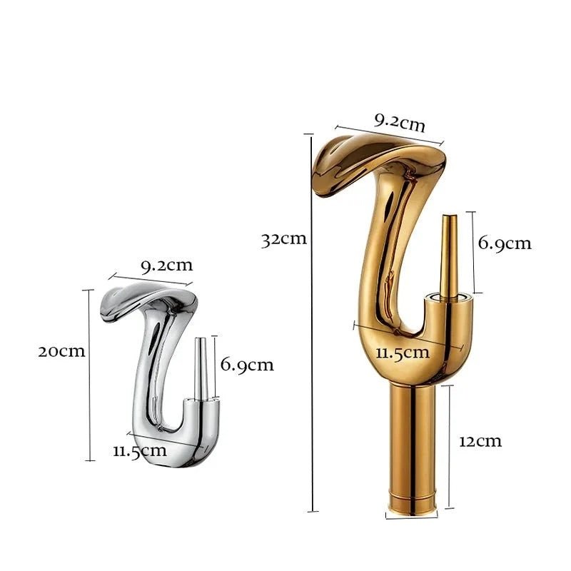 Son corps en laiton massif recouvert d’une finition dorée brillante attire immédiatement l’œil. Sa forme fluide et innovante transforme un point d’eau en véritable œuvre design, sans compromis sur la durabilité.