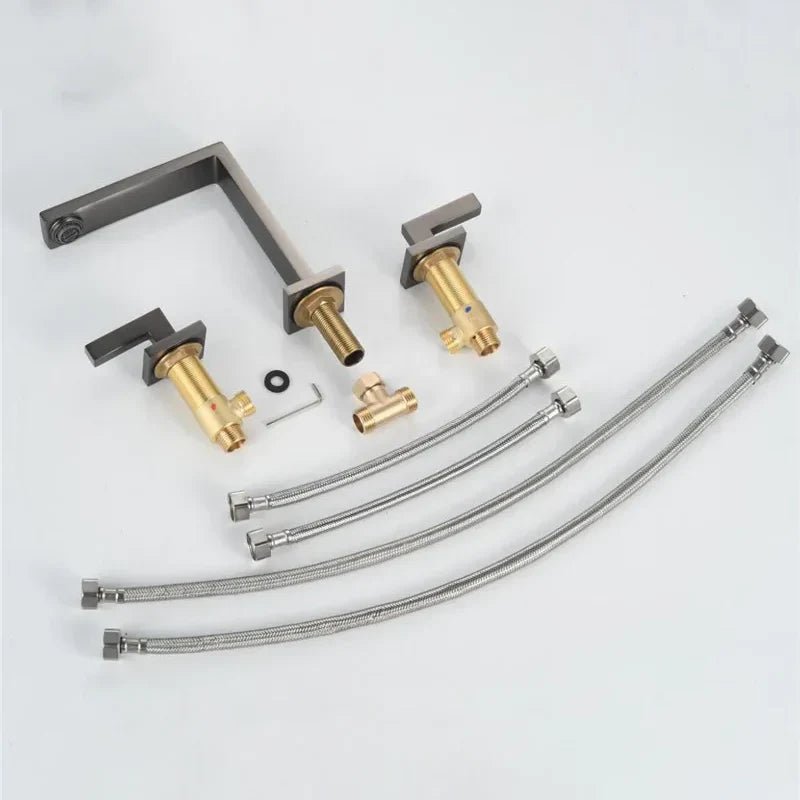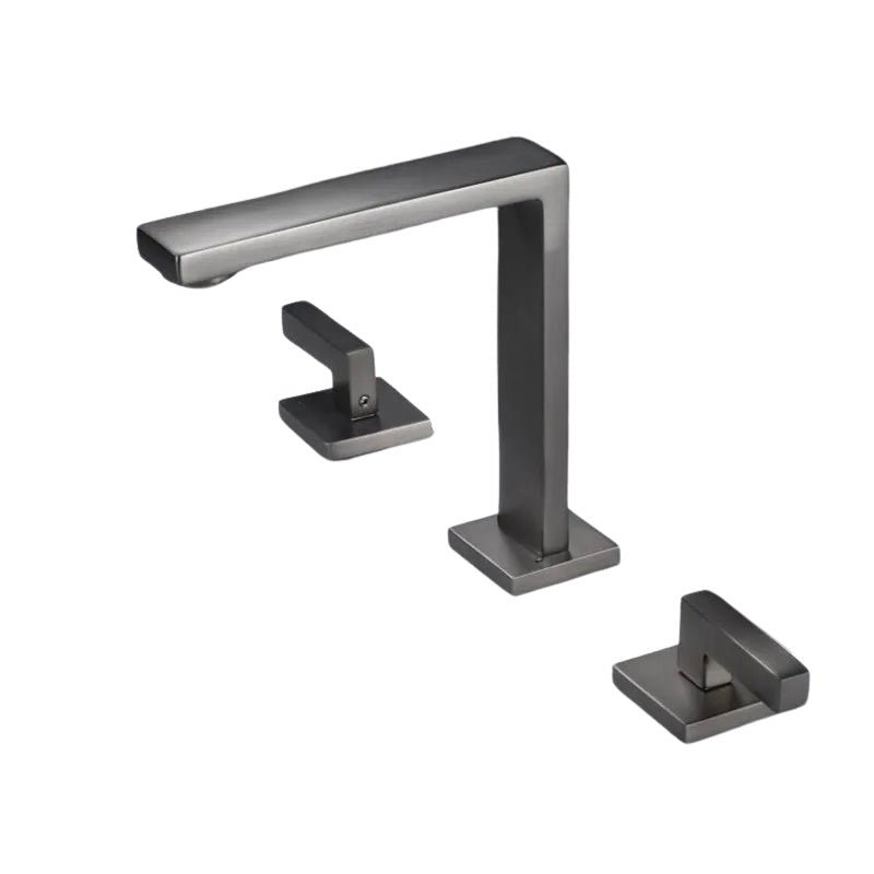 Matériau : Laiton Couleur : Argenté chromé ou anthracite brossé  Dimensions : 17×16 cm Poids : 1,407 kg Pièce : Salle de bain Type : Robinet de lavabo avec poignées déportées Type de raccord entrée / sortie : G 1/2 mâle Flexible d’alimentation : Oui (inclus) Eau chaude / eau froide : Oui Contrôle de la température : Manuel
