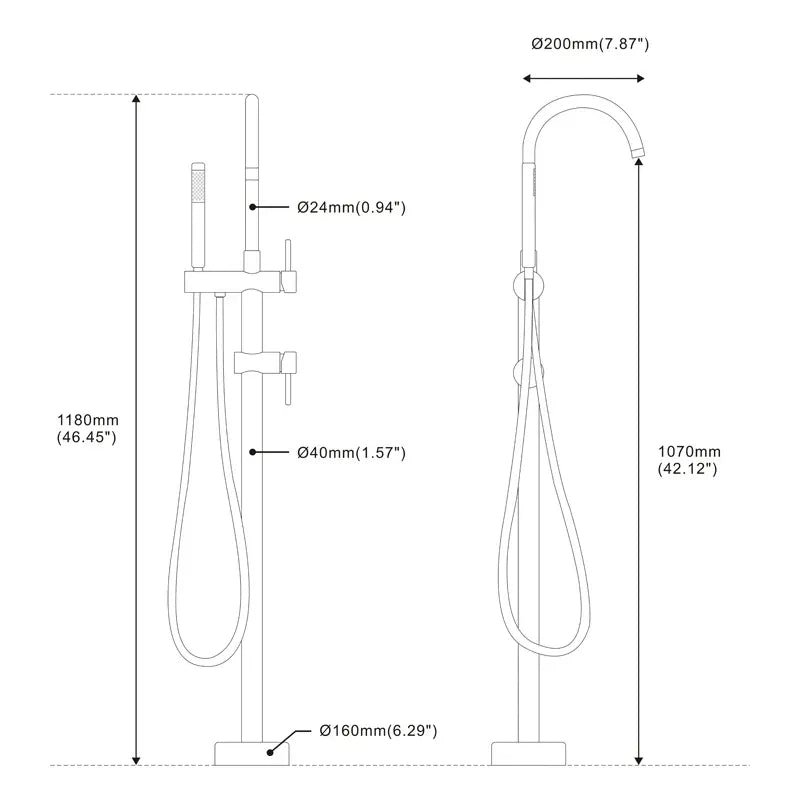 Matériau : Laiton Couleur : Noir mat Dimensions : 1070 x 200 mm Une douchette et bec de robinet classique Montage au sol Pièce : Salle de bain Type : Robinet baignoire montage au sol avec douchette Type de raccord entrée/sortie : Femelle 1/2 Flexible d’alimentation : Oui Eau chaude / eau froide : Oui Contrôle de la température : Manuel