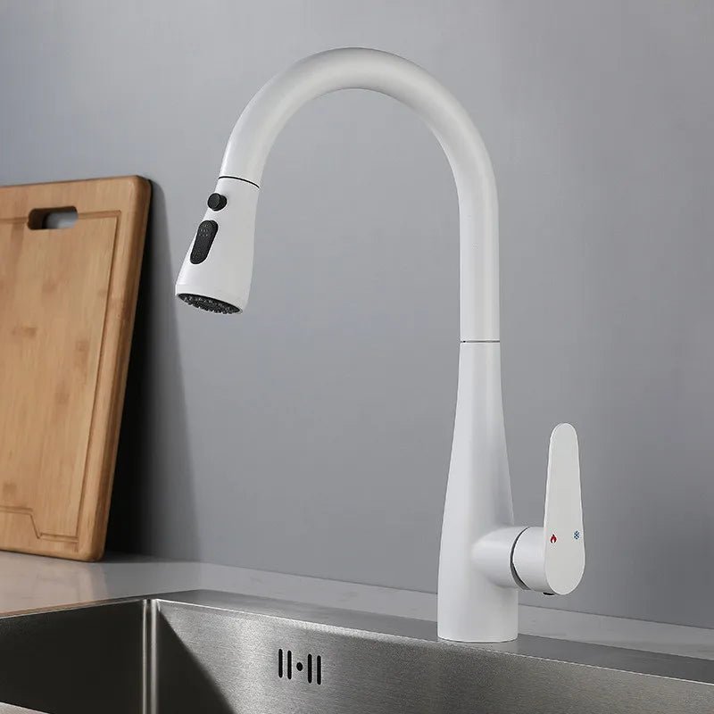 Ce robinet est équipé d’une douchette avec deux types de jets (pluie ou concentré), parfaite pour rincer rapidement ou nettoyer efficacement. Le tuyau s’extrait en douceur et se rétracte automatiquement grâce à un système interne discret et fiable.