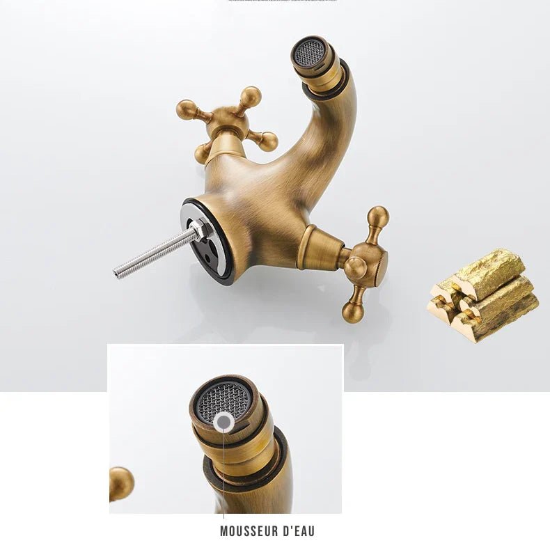 La finition en laiton antique et les poignées croisées de ce robinet apportent une touche d’élégance classique à votre lavabo. Son design intemporel s’adapte parfaitement à une décoration rétro ou traditionnelle.