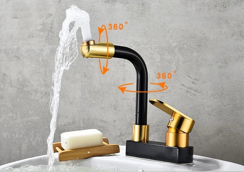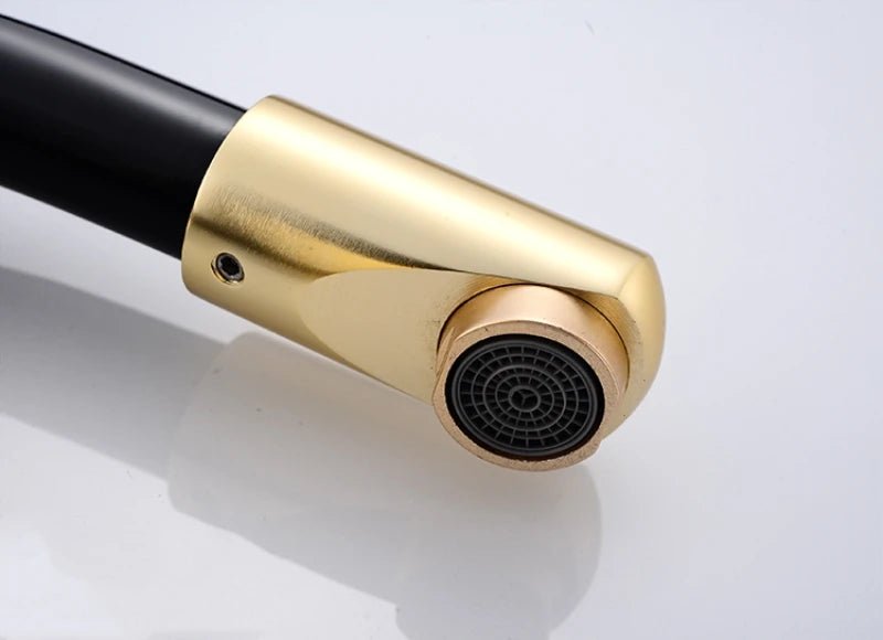 Avec ses lignes géométriques audacieuses et ses finitions contrastées, ce robinet devient un véritable point focal dans la salle de bain. Le mélange du noir profond et du doré brillant reflète parfaitement l’élégance contemporaine.