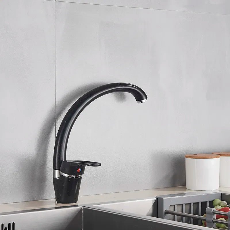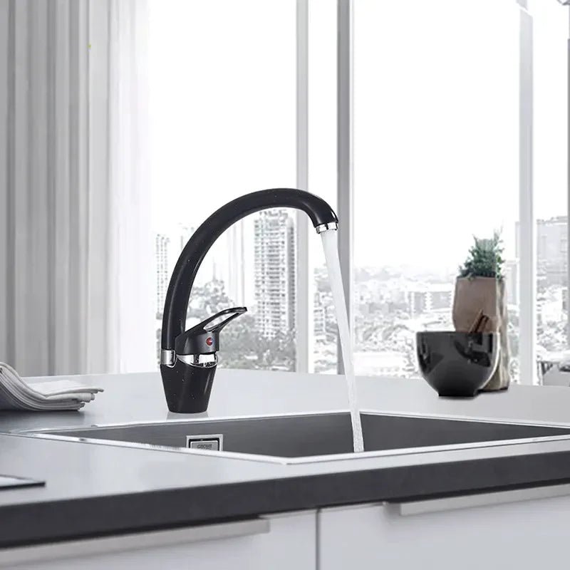 Ce robinet mitigeur noir allie design moderne et accessibilité, parfait pour équiper votre cuisine avec style à petit prix. Son revêtement noir mat confère une élégance intemporelle tout en résistant aux traces et aux taches. Son bec courbé et ergonomique assure une grande facilité d'utilisation pour le nettoyage et le remplissage des casseroles. Fabriqué en matériaux robustes et conçu pour durer, il est idéal pour les cuisines modernes cherchant à allier fonctionnalité et esthétique sans dépasser le budget. Pratique, durable et élégant, ce robinet répond à vos besoins quotidiens.