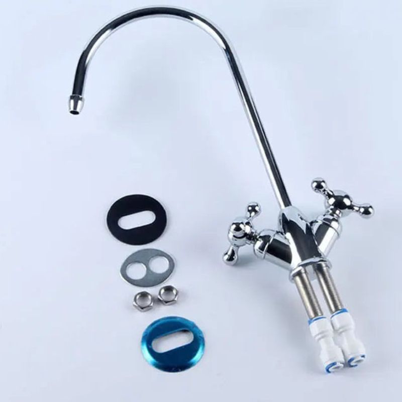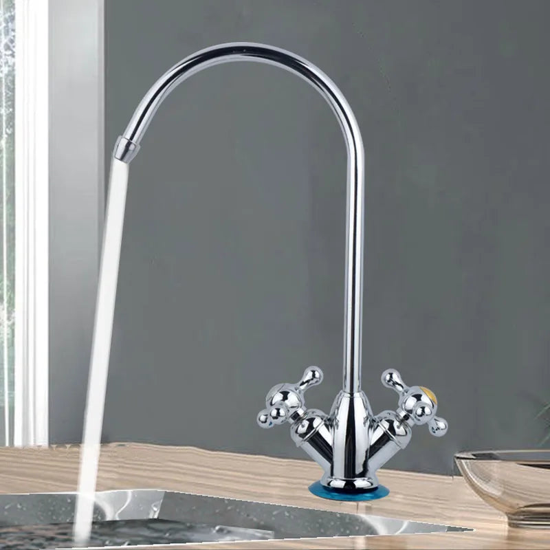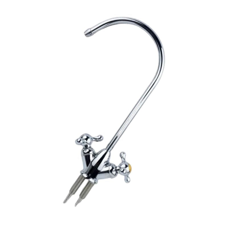 meta charset="utf-8">Ce robinet osmoseur vintage apporte une touche rétro à votre cuisine tout en garantissant une distribution d’eau pure. Idéal pour les systèmes d’osmose inverse ou de filtration, il est équipé de deux poignées style croix qui permettent un contrôle séparé et précis. Son bec en col de cygne offre un écoulement fluide et évite les éclaboussures lors du remplissage. Fabriqué en laiton chromé, il résiste à la corrosion et assure une excellente longévité. Ce robinet allie parfaitement esthétisme classique et performance moderne pour une utilisation quotidienne.