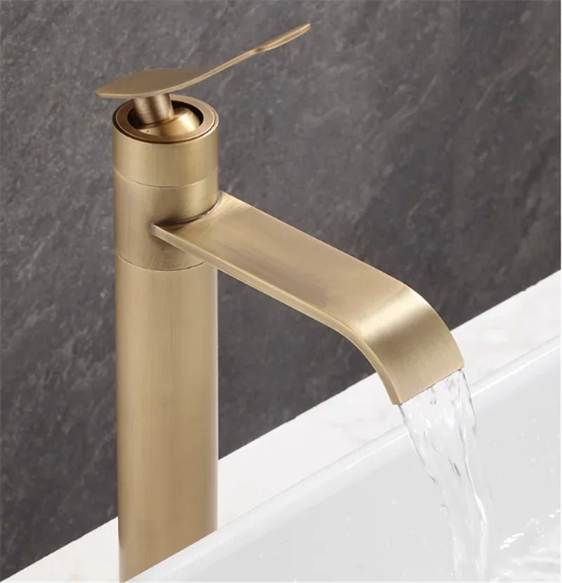 meta charset="utf-8">Ce robinet de salle de bain à bec long est l’alliance parfaite entre design minimaliste et fonctionnalité. Sa finition dorée brossée et sa silhouette cylindrique en font une pièce élégante, idéale pour une vasque posée. Le bec extra long assure un jet fluide bien centré, tout en laissant un espace confortable pour les gestes du quotidien. La poignée incurvée permet un réglage précis de la température et du débit. Fabriqué en laiton massif, il offre durabilité et facilité d’entretien.