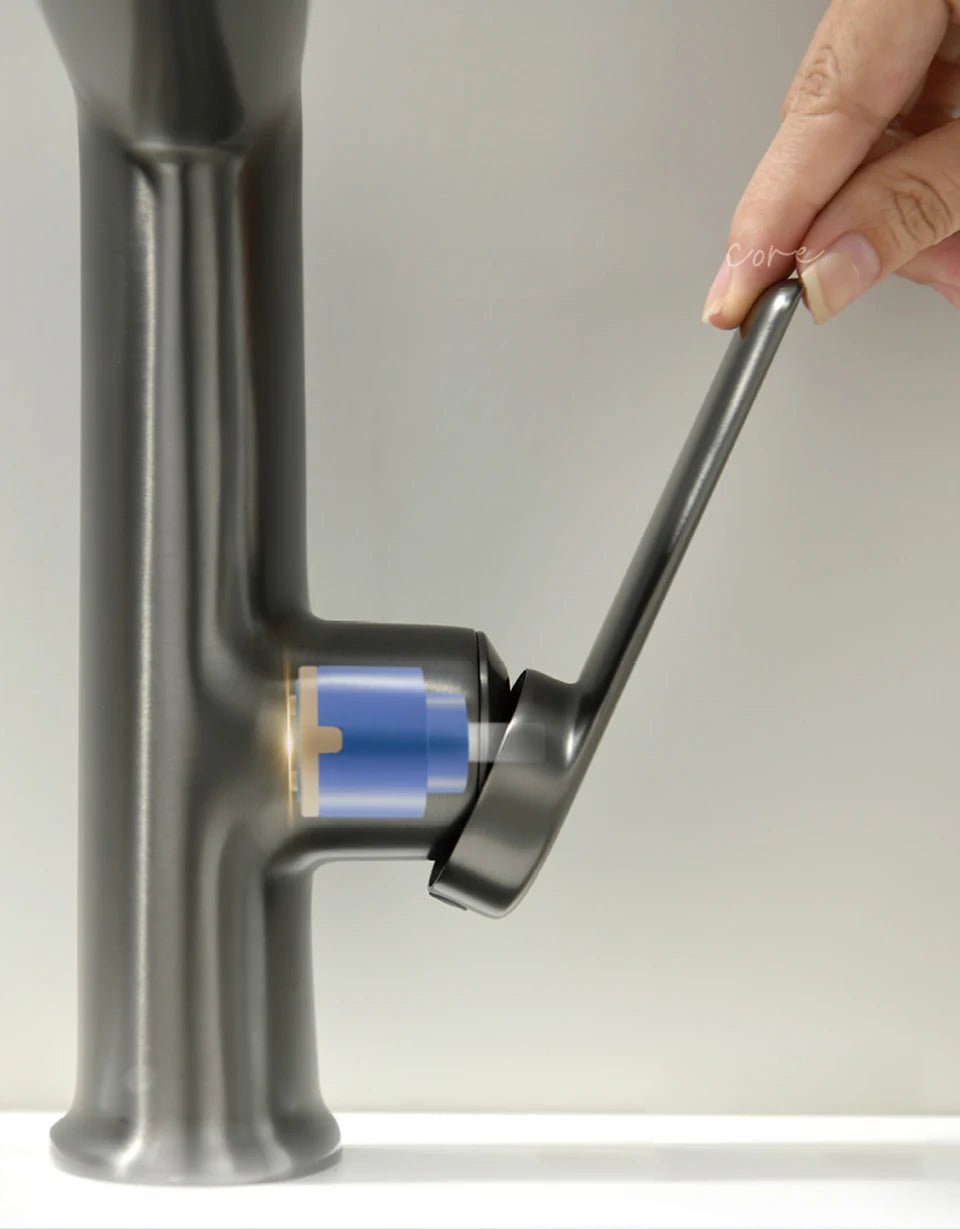 Ce robinet allie esthétique minimaliste et performance. Son levier latéral ergonomique permet un réglage intuitif de la température et du débit. Conçu pour durer, il est fabriqué en laiton massif, avec un traitement anti-oxydation pour une brillance durable.