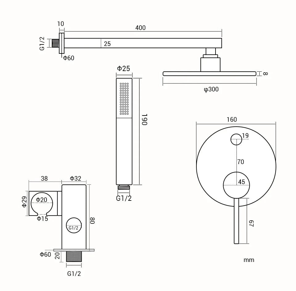 Ciel de douche : diamètre disponible en 20 cm, 25 cm ou 30 cm